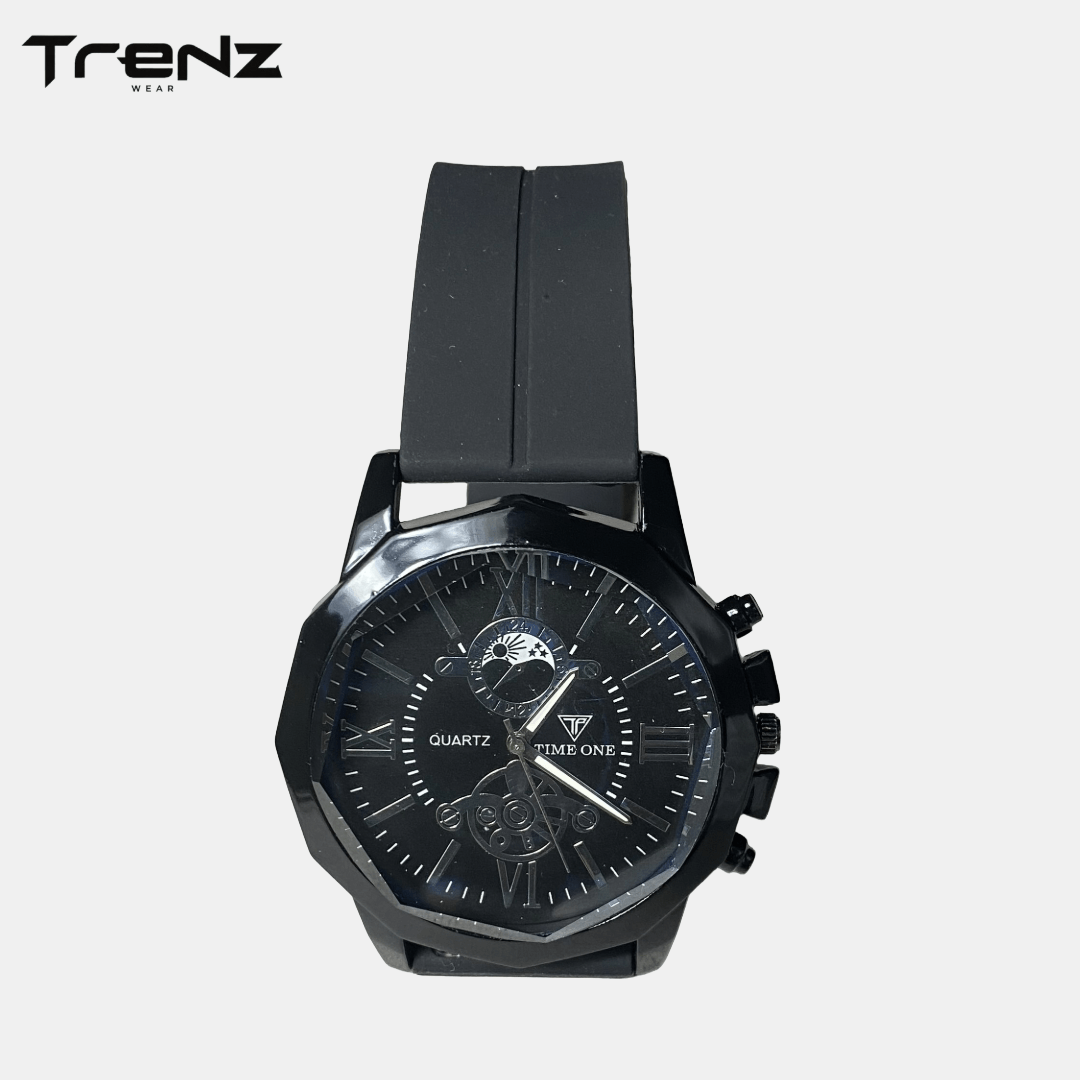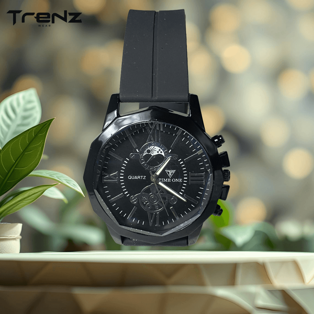 Keywords: magnetic strap watch, quartz wristwatch, men’s watch, unisex black watch, office casual watch, Time One watch